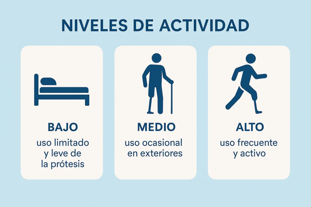 | Nivel de Actividad | Características del Usuario | Recomendaciones Protésicas |
